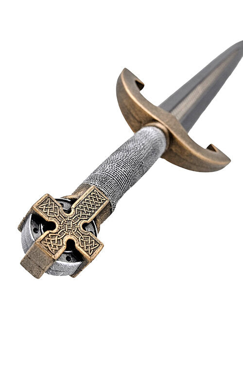 DescriptionThe Keltis II dagger has a steel-colored finish and is adorned with stunning gold detailing along its center. Crafted from the exclusive Calimacil foam formula, this weapon boasts remarkable realism and durability without compromising safety. The handle features a gold and steel paint job, and the grip has a rope-like texture for optimal handling. This dagger is an excellent choice as a weapon for knights and holy warriors, while its compact size makes it suitable for merchants, lone travelers, and priestly figures. With its intricate detailing and gold accents, it could also serve as a status symbol for nobles.