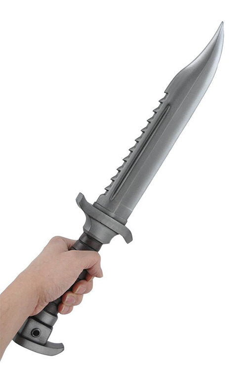 DescriptionThe Calimacil Sly Master Dagger has the rugged and practical appearance of a post-apocalyptic survivalist knife. It features a sharp, saw-backed, steel-colored blade affixed to a textured brown leather handle that provides an excellent grip. Made from our reliable and safe Calimacil foam material, this weapon is durable and safe enough for use in any LARP context. Suitable for any wasteland explorer, this dagger is a versatile tool that can be used by any character in a variety of situations.