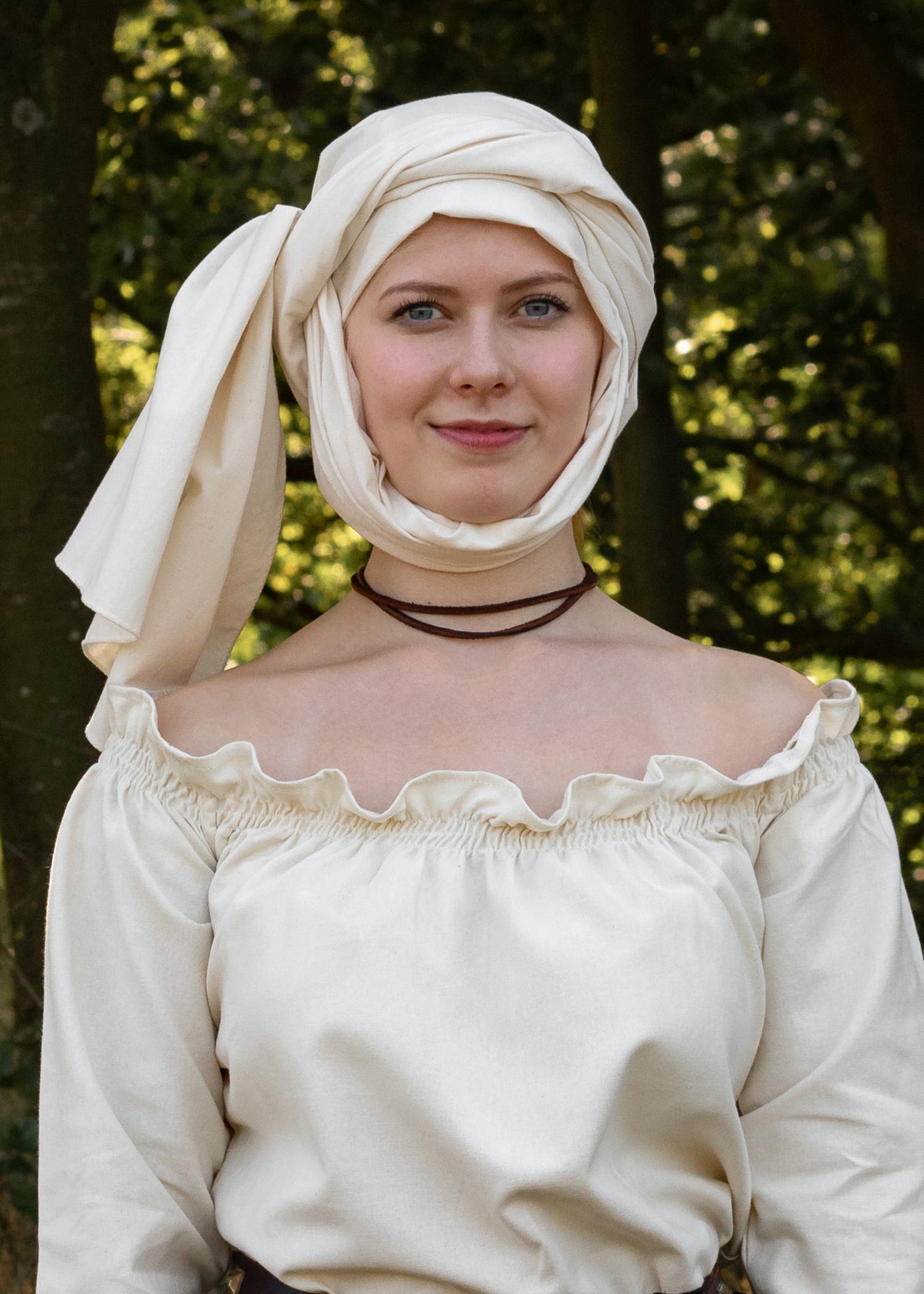 Banderín Medieval, Pañuelo en la Cabeza, Natural – El Velo del Recato Ancestral