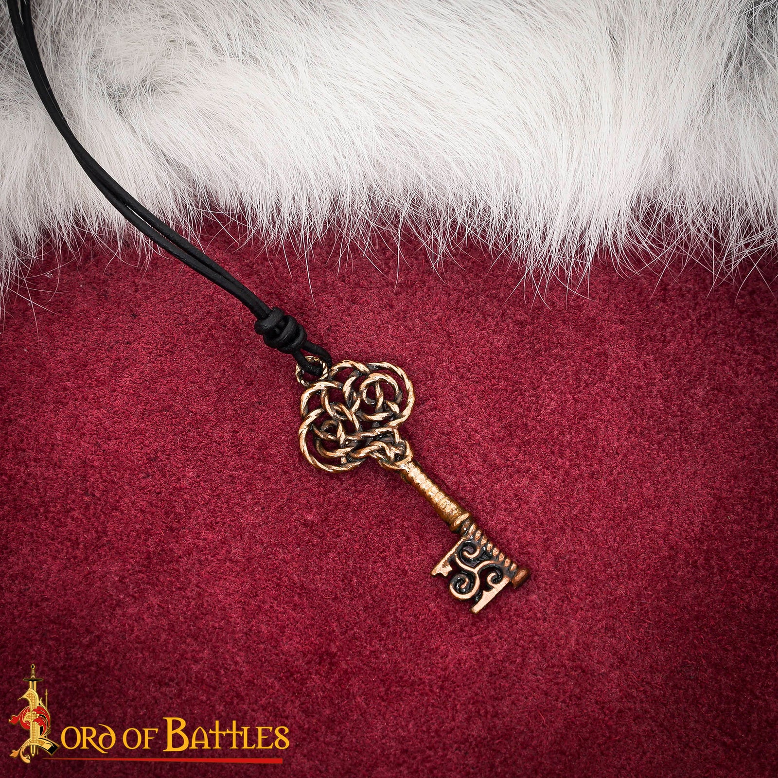 cada pieza presenta sutiles variaciones que le confieren un carácter artesanal único. La empuñadura presenta un motivo en forma de corona en bucle, combinado con una espiral que imita el diseño tradicional del herraje. Aunque es decorativa, conserva el aspecto y el tacto de una llave medieval en funcionamiento, lo que la hace ideal para la joyería de temática histórica.