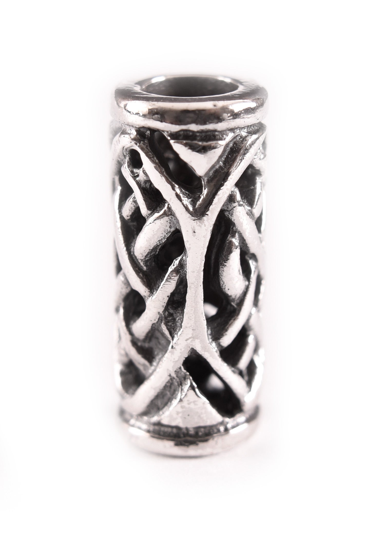 Perla para barba celta con patrón trenzado de plata