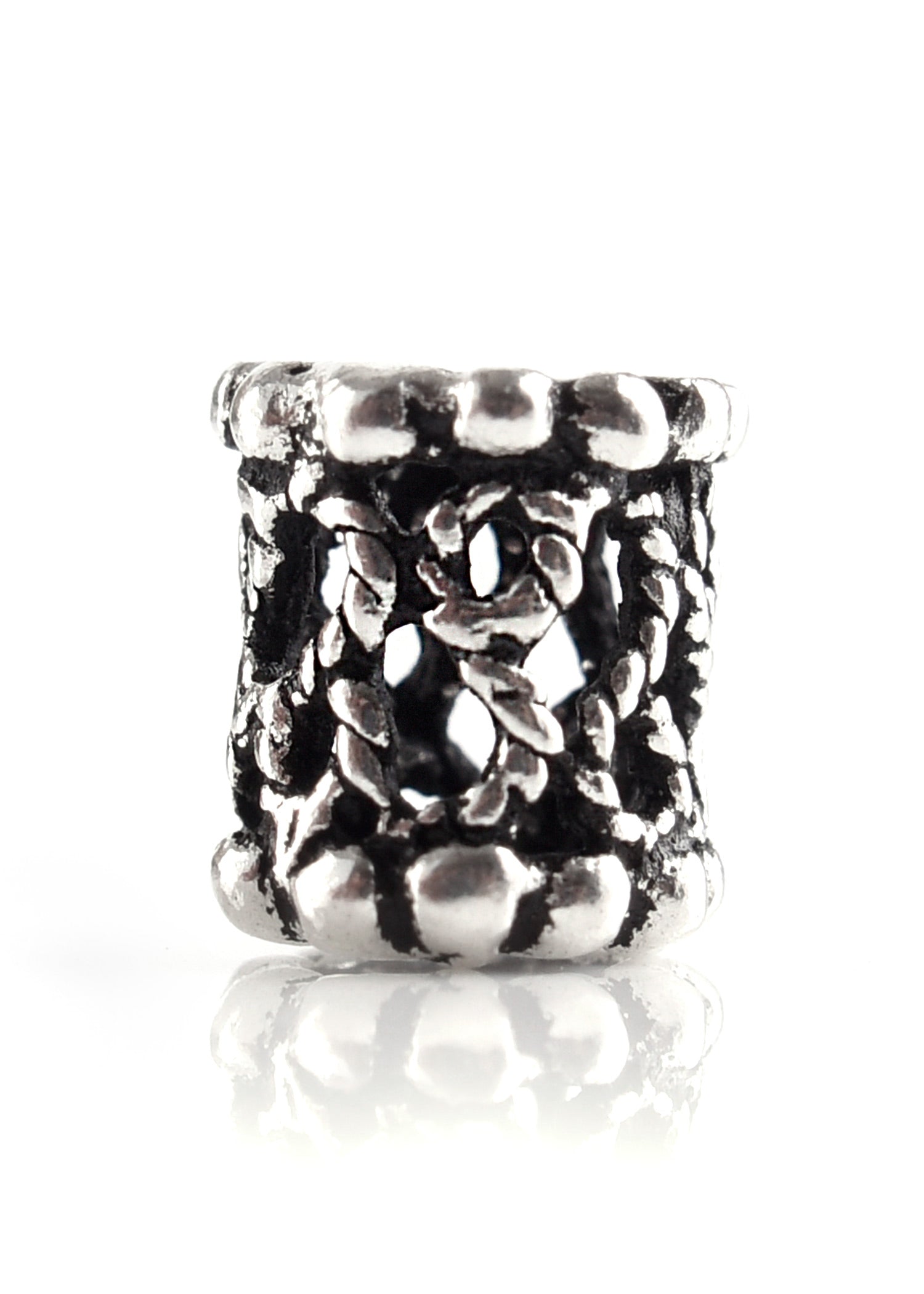 perla decorativa pequeña y de filigrana de plata que refina cada trenza de barba, decora el cabello de una doncella o como colgante en un sirve collar fino o cadena para el brazo.