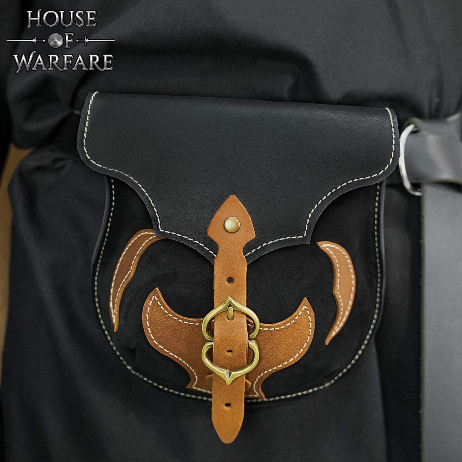 La ancha trabilla de la bolsa se adapta a cinturones de hasta 11,4 cm (4,5 pulgadas), lo que permite que se apoye firmemente en la cadera sin desplazarse. Su interior ofrece un amplio espacio para pequeños objetos esenciales, perfecto para monedas, pedernal, sellos de cera, mapas u otros objetos cotidianos que puedas necesitar en una feria, una exhibición en el campo de batalla o una reunión medieval.