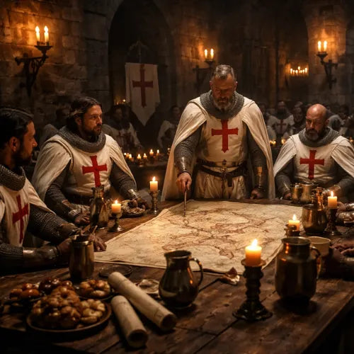 Fundada en Jerusalén en 1119 por Hugo de Payns y ocho caballeros francos, la Orden del Temple se convirtió en la más poderosa institución militar-religiosa de la Edad Media. Durante casi dos siglos dominaron los campos de batalla de Tierra Santa, desde las llanuras de Hattin (1187) hasta los muros de Acre (1291), portando el icónico manto blanco con la cruz paté roja como símbolo de su doble vocación: la oración y la guerra. Su disolución por Felipe IV de Francia y el papa Clemente V en 1312 no hizo sino acrecentar su leyenda.