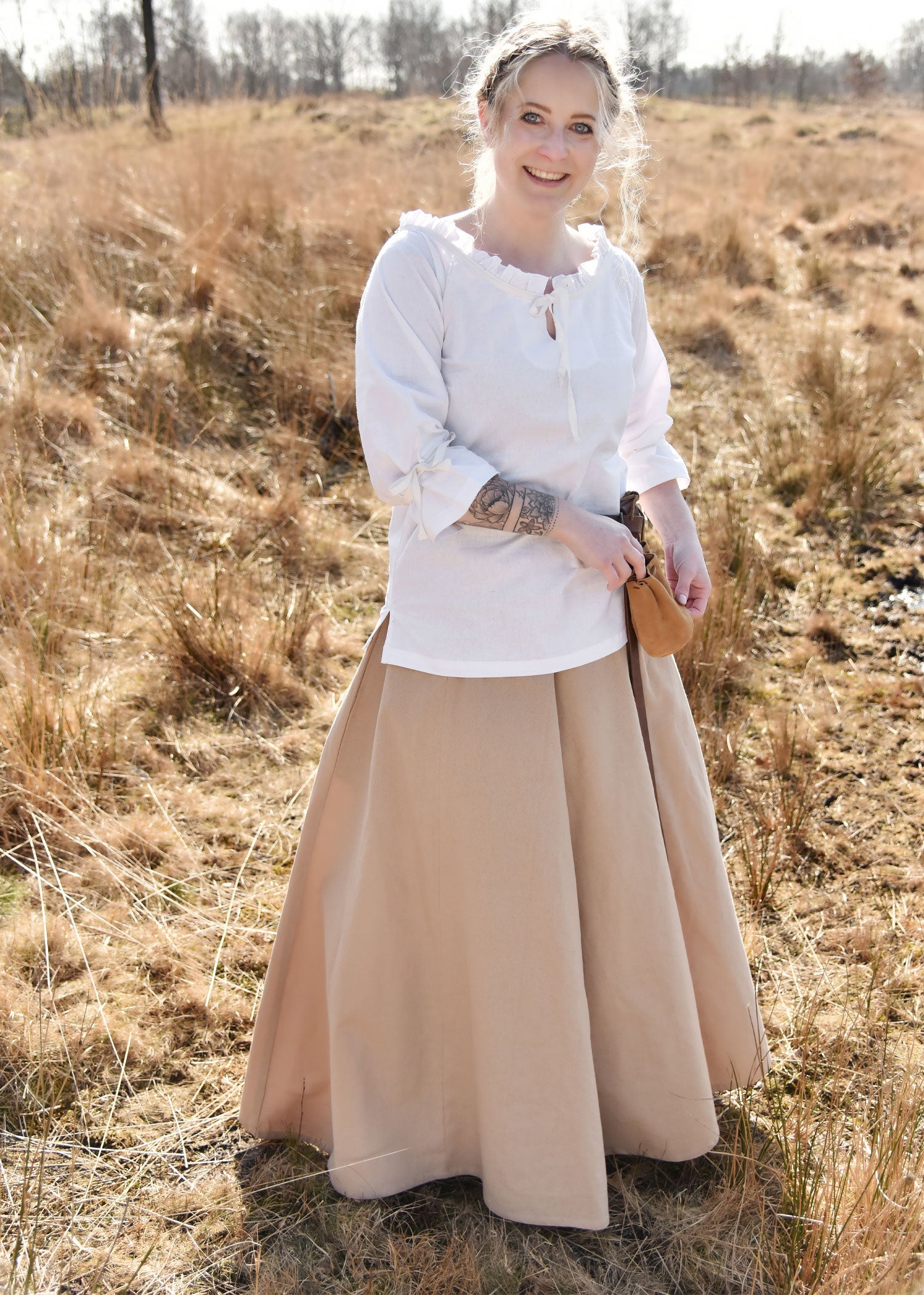 Graças ao seu corte largo e comprimento generoso, esta saia tem um corte muito elegante. Os dois bolsos interiores são práticos e realçam o belo ajuste desta saia medieval.