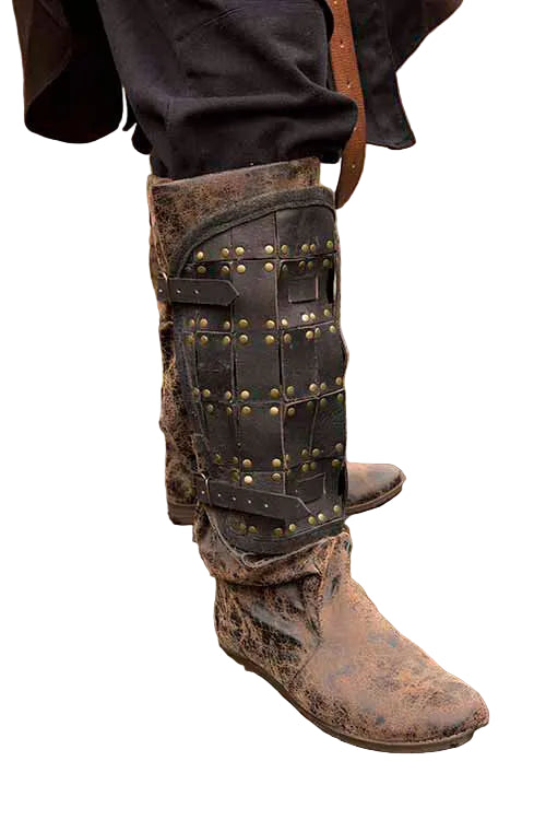 As caneleiras de combate da Epic Armoury são caneleiras de couro elegantes, prontas para a batalha, concebidas para proteger os gémeos. A armadura é construída com peças de couro curtido ao cromo e banhado, rebitadas com tachas de latão em couro rachado flexível. A armadura é fixada às barrigas das pernas com tiras de couro resistentes e fivelas de ferro.